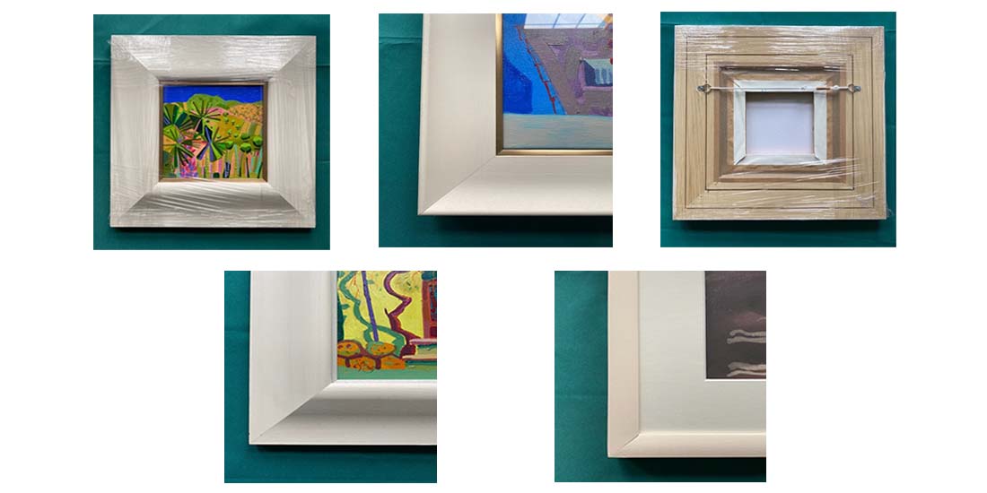 This is an example of the type and style of frames I usually use. The mouldings are all bespoke and hand painted by a professional artists’ framer. I have them painted in ivory, which is both contemporary and compliments the vibrant paintings; the pale neutral colour also sits well in any interior.
