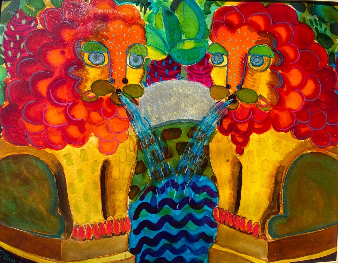 The image of the stone lions was taken from drawings produced in the grounds of Culzean castle in Scotland; designed by the famous Scottish neoclassical architect Robert Adam.